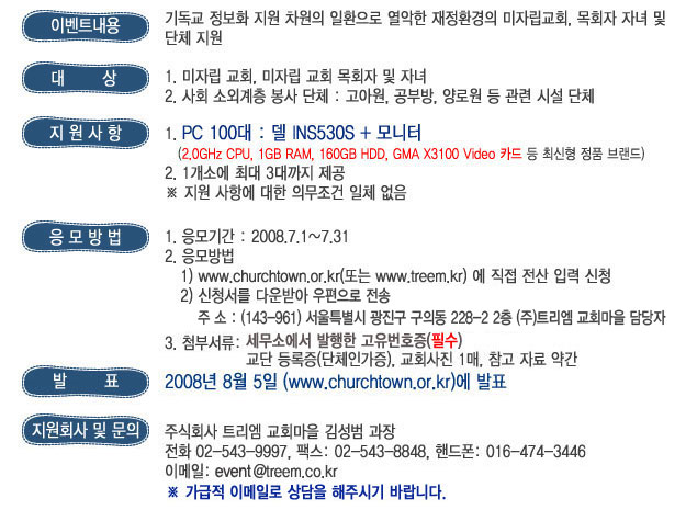 미자립 교회, 목회자 자녀 및 단체 PC 지원